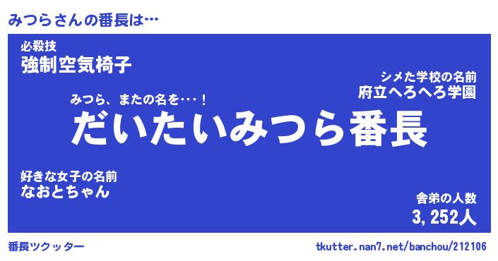 | 2回繰り返すあだ名 | 『みつみつ』『みみつつ』『ぬめぬめ』 |