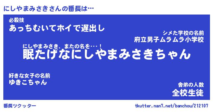 | 伝説のあだ名 | 『封印されしスナイパーにしやまみさき』 |