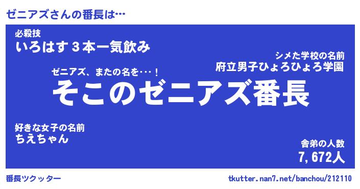 | 意味不明あだ名 | 『ペロリンゼニアズ』『永久保存ゼニアズ』 |