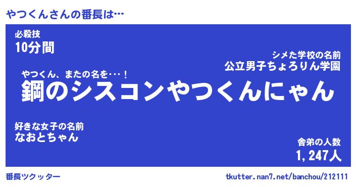 | 意味不明あだ名 | 『ペロリンやつくん』『永久保存やつくん』 |