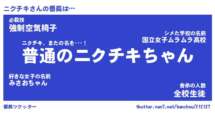 | ヒーロー風カッコイイあだ名 | 『スーパーニクチキ』『暗黒騎士ニク』 |