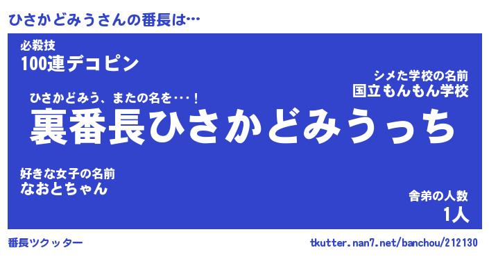 | ヒーロー風カッコイイあだ名 | 『スーパーヒサカドミウ』『黄金騎士ヒサ』 |