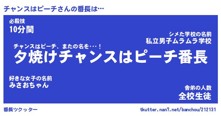 | 伝説のあだ名 | 『封印されし竜騎士チャンスはピーチ』 |