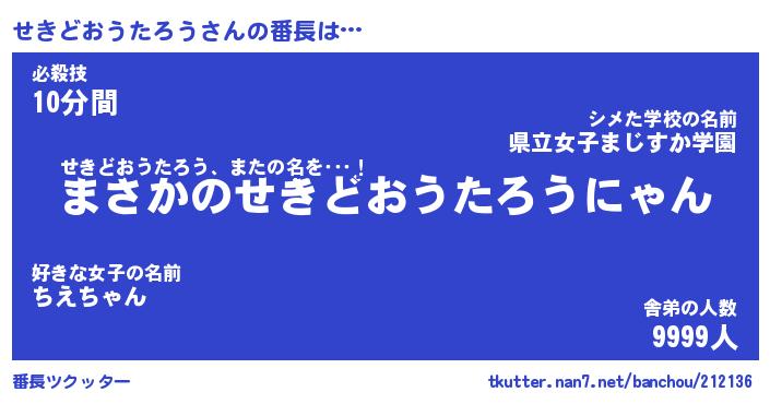 | 男性向けラノベタイトル風あだ名 | 『せきどおうたろうの憂鬱』 |