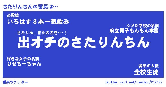 | 男性向けラノベタイトル風あだ名 | 『さたりんの憂鬱』 |