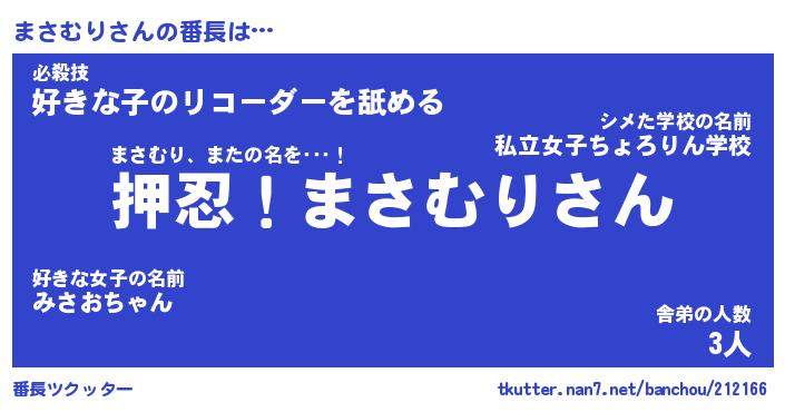 | 伝説のあだ名 | 『封印されし竜騎士まさむり』 |