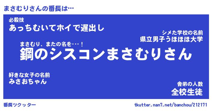 | 伝説のあだ名 | 『封印されし竜騎士まさむり』 |