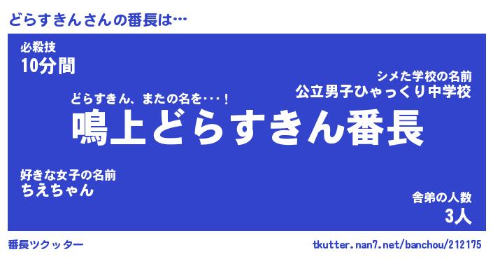 | 肩書あだ名 | 『どらすきん御曹司』『どらすきん班長』 |