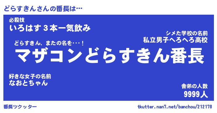 | 肩書あだ名 | 『どらすきん店長』『どらすきん大統領』 |