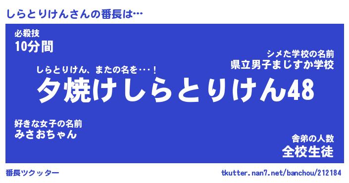| 肩書あだ名 | 『しらとりけん社長』『しらとりけん班長』 |