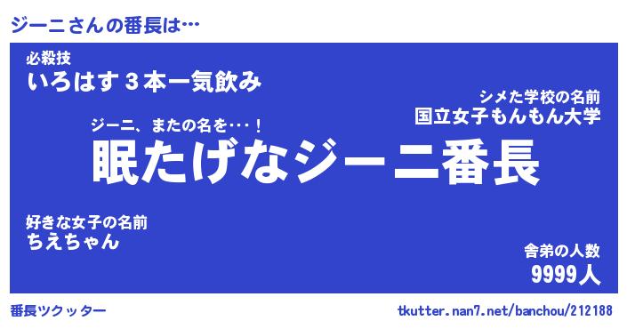 | ヘコむあだ名 | 『ジーもー』『酢こんぶ』『ジー太郎』 |