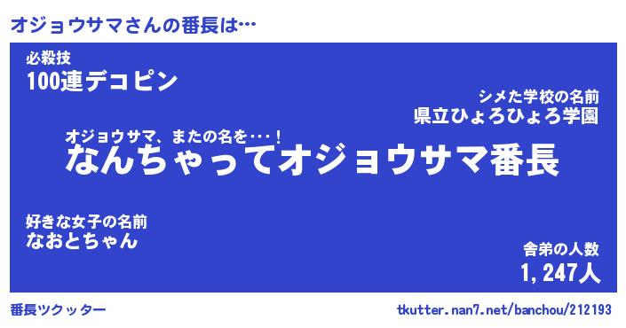 | 伝説のあだ名 | 『伝説のスナイパーオジョウサマ』 |
