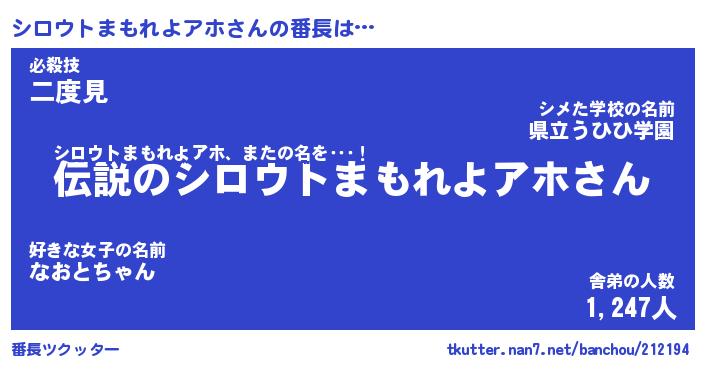 | 伝説のあだ名 | 『伝説のスナイパーシロウトまもれよアホ』 |