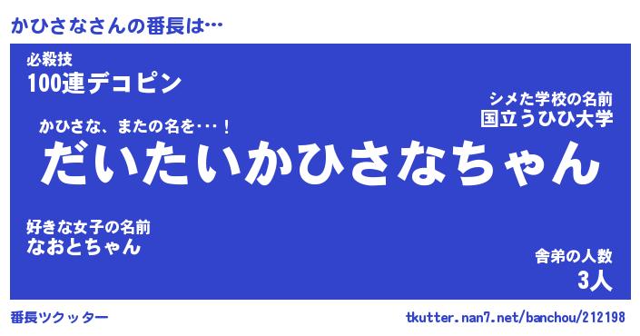 | ポケモン風あだ名 | 『カヒチュウ』『カヒサダネ』 |