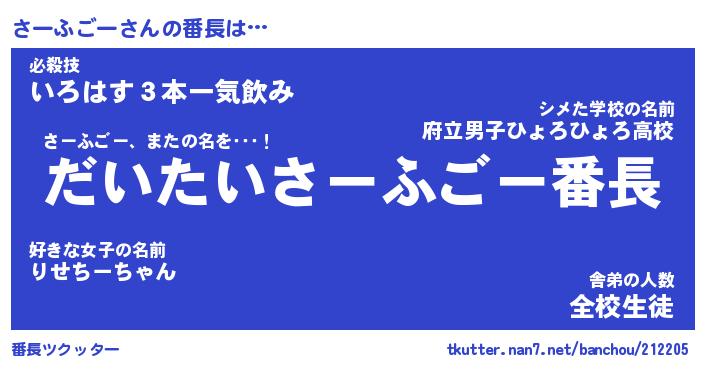 | 男性向けラノベタイトル風あだ名 | 『さーふごーの憂鬱』 |