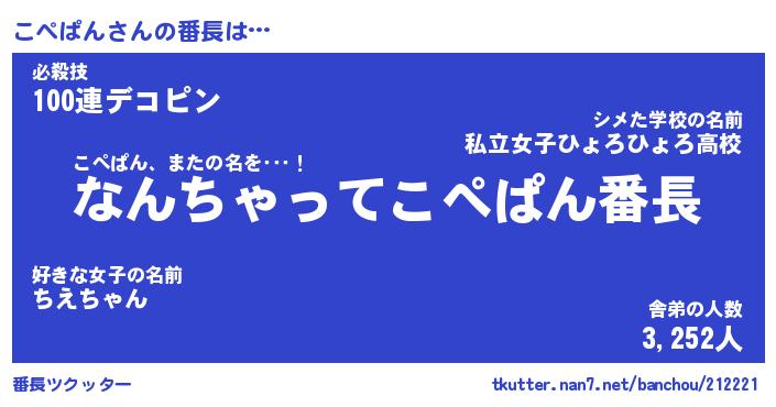 | 肩書あだ名 | 『こぺぱんCEO』『こぺぱん総理大臣』 |