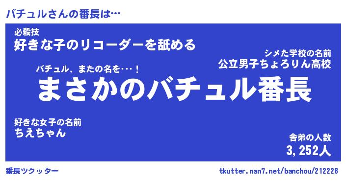 | 意味不明あだ名 | 『ペロリンバチュル』『永久保存バチュル』 |