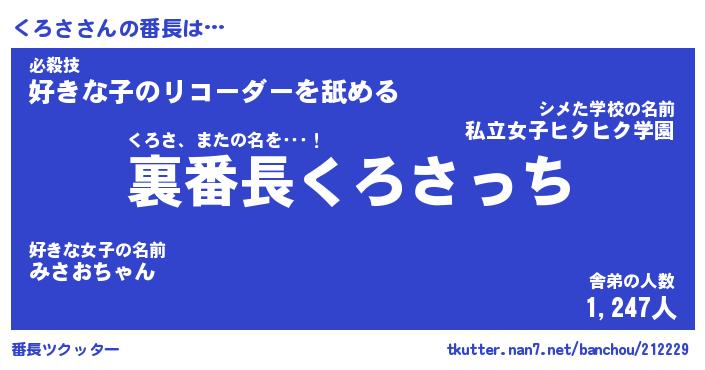 | 意味不明あだ名 | 『ペロリンくろさ』『くろさフォーエバー』 |
