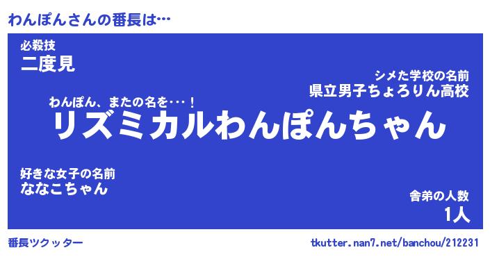 | 意味不明あだ名 | 『ペロリンわんぽん』『永久保存わんぽん』 |