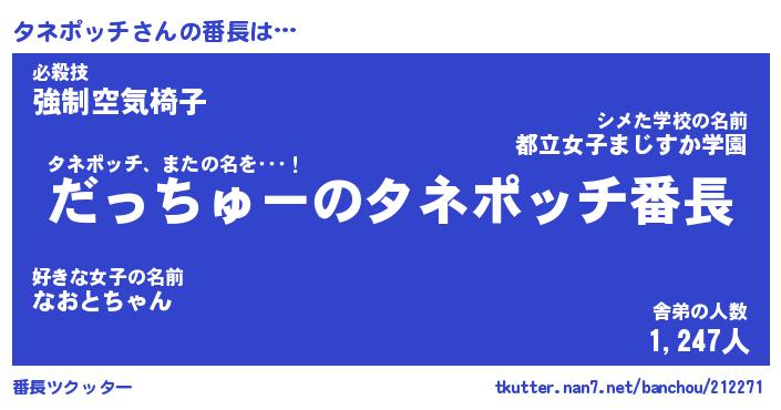 | 猫の名前『タネポッチにゃん』性別『♀』 |