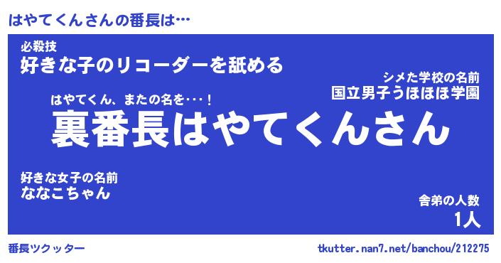 | 肩書あだ名 | 『はやてくん社長令嬢』『はやてくん塾長』 |