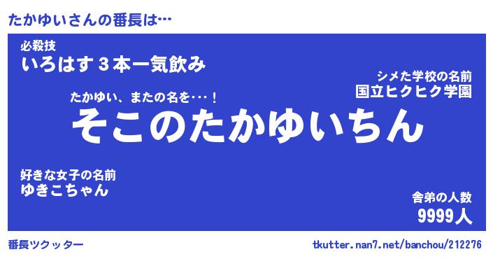 | 意味不明あだ名 | 『ペロリンたかゆい』『永久保存たかゆい』 |