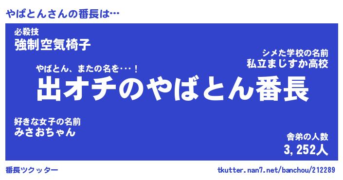 | 欧米人風あだ名 | 『マイケルやばとん』『ウサインやばとん』 |