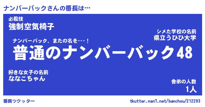 | 男性向けラノベタイトル風あだ名 | 『ナンバーバックの憂鬱』 |
