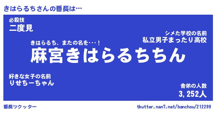 | 恥ずかしいあだ名 | 『プリティーきはらるち』『きはっちょ』 |