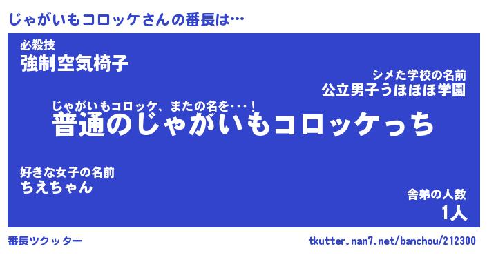 | 男性向けラノベタイトル風あだ名 | 『じゃがいもコロッケの憂鬱』 |