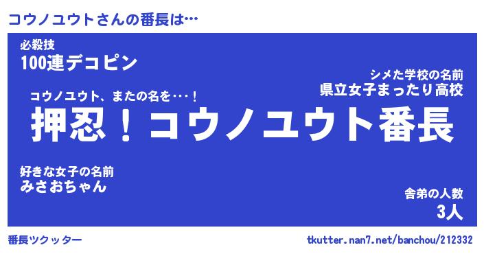 | ヒーロー風カッコイイあだ名 | 『スーパーコウノユウト』『黄金騎士コウ』 |
