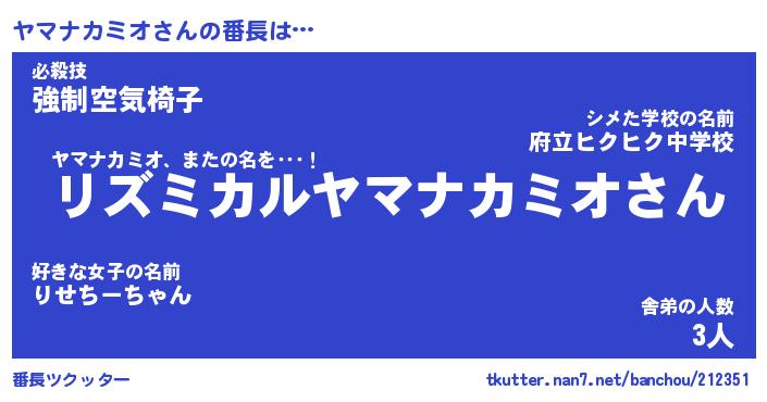 | ヘコむあだ名 | 『ヤマにゅー』『つくし』『ヤマお』 |