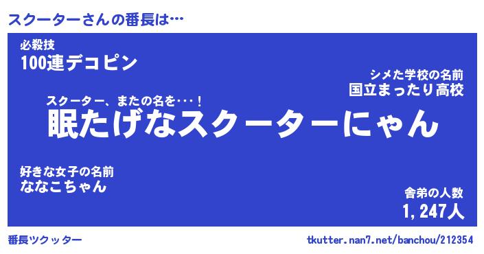 | ファンタジー風あだ名 | 『スクフェル』『エターナルスクーターー』 |
