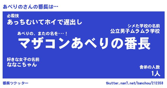 | 伝説のあだ名 | 『封印されしスナイパーあべりの』 |
