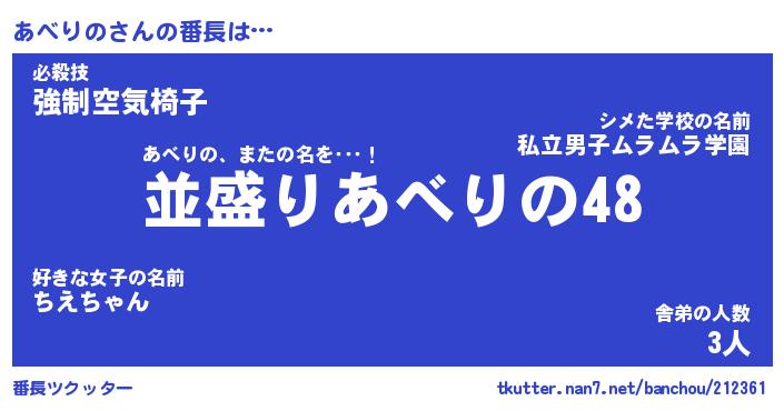 | 意味不明あだ名 | 『ペロリンあべりの』『永久保存あべりの』 |
