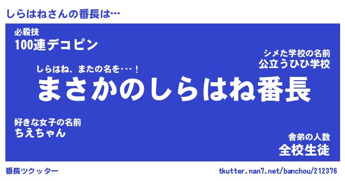 | 意味不明あだ名 | 『ペロリンしらはね』『永久保存しらはね』 |