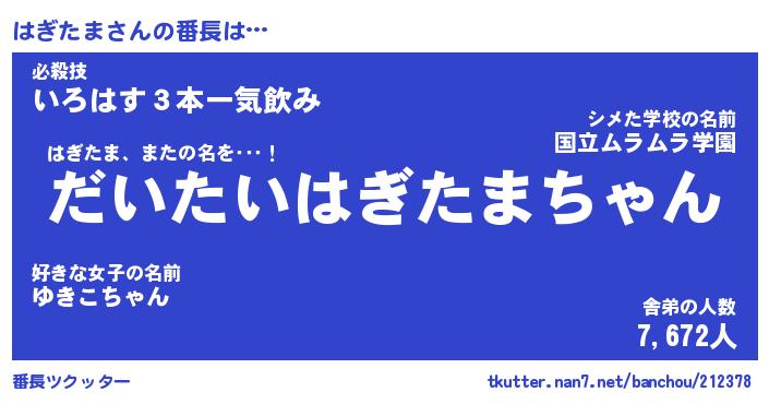 | ポケモン風あだ名 | 『ハギチュウ』『ハギタダネ』 |