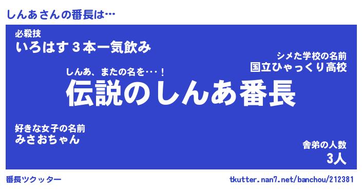| ヒーロー風カッコイイあだ名 | 『スーパーシンア』『ウルトラしんあマン』 |