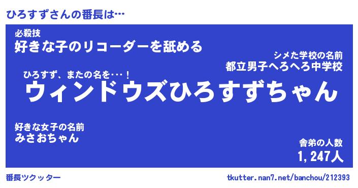 | ヘコむあだ名 | 『ひろふぇ~』『酢こんぶ』『ひろお』 |