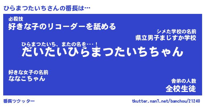 | 男性向けラノベタイトル風あだ名 | 『ひらまつたいちの憂鬱』 |