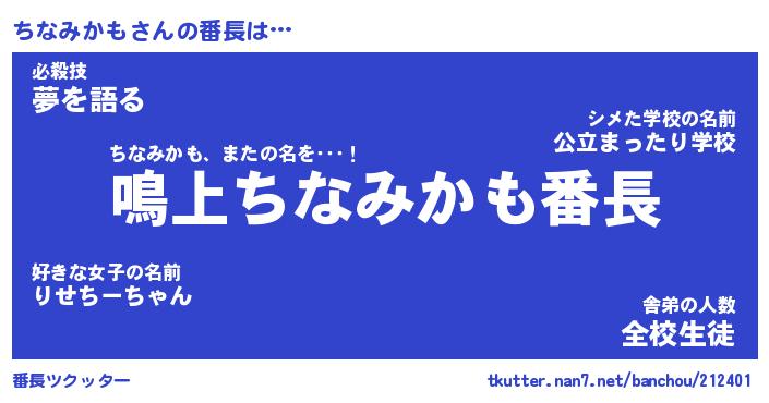 | 2回繰り返すあだ名 | 『ちなちな』『ちちなな』『うろうろ』 |