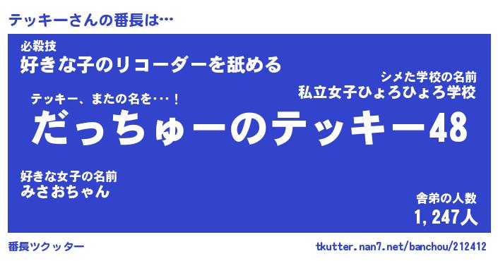 | 意味不明あだ名 | 『ペロリンテッキー』『永久保存テッキー』 |
