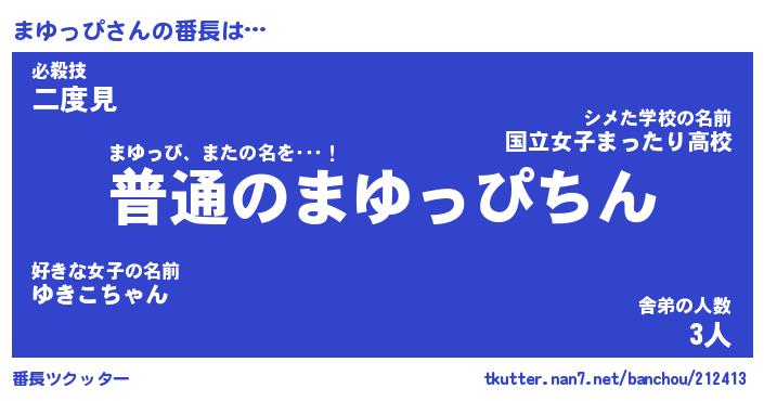 | ファンタジー風あだ名 | 『マユフェル』『エターナルマユッピー』 |