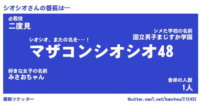 | 2回繰り返すあだ名 | 『シオシオ』『シシオオ』『あんあん』 |