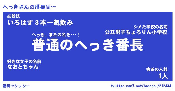 | 肩書あだ名 | 『へっき御曹司』『へっき国家主席』 |