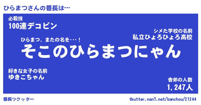 | 意味不明あだ名 | 『ペロリンひらまつ』『永久保存ひらまつ』 |