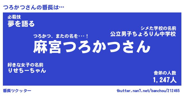 | 意味不明あだ名 | 『ペロリンつろかつ』『永久保存つろかつ』 |