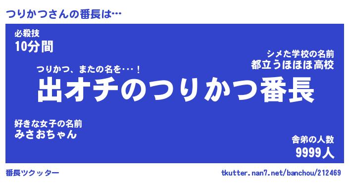 | 伝説のあだ名 | 『伝説のスナイパーつりかつ』 |