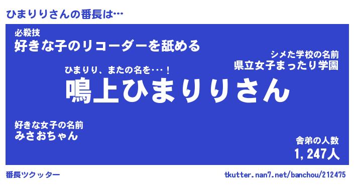 | 伝説のあだ名 | 『封印されしスナイパーひまりり』 |