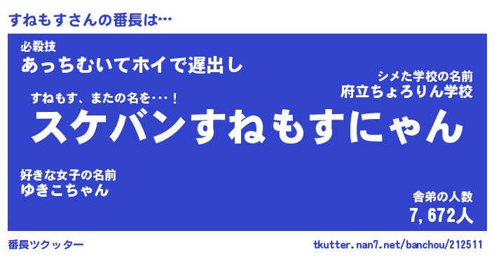 | 意味不明あだ名 | 『ペロリンすねもす』『永久保存すねもす』 |